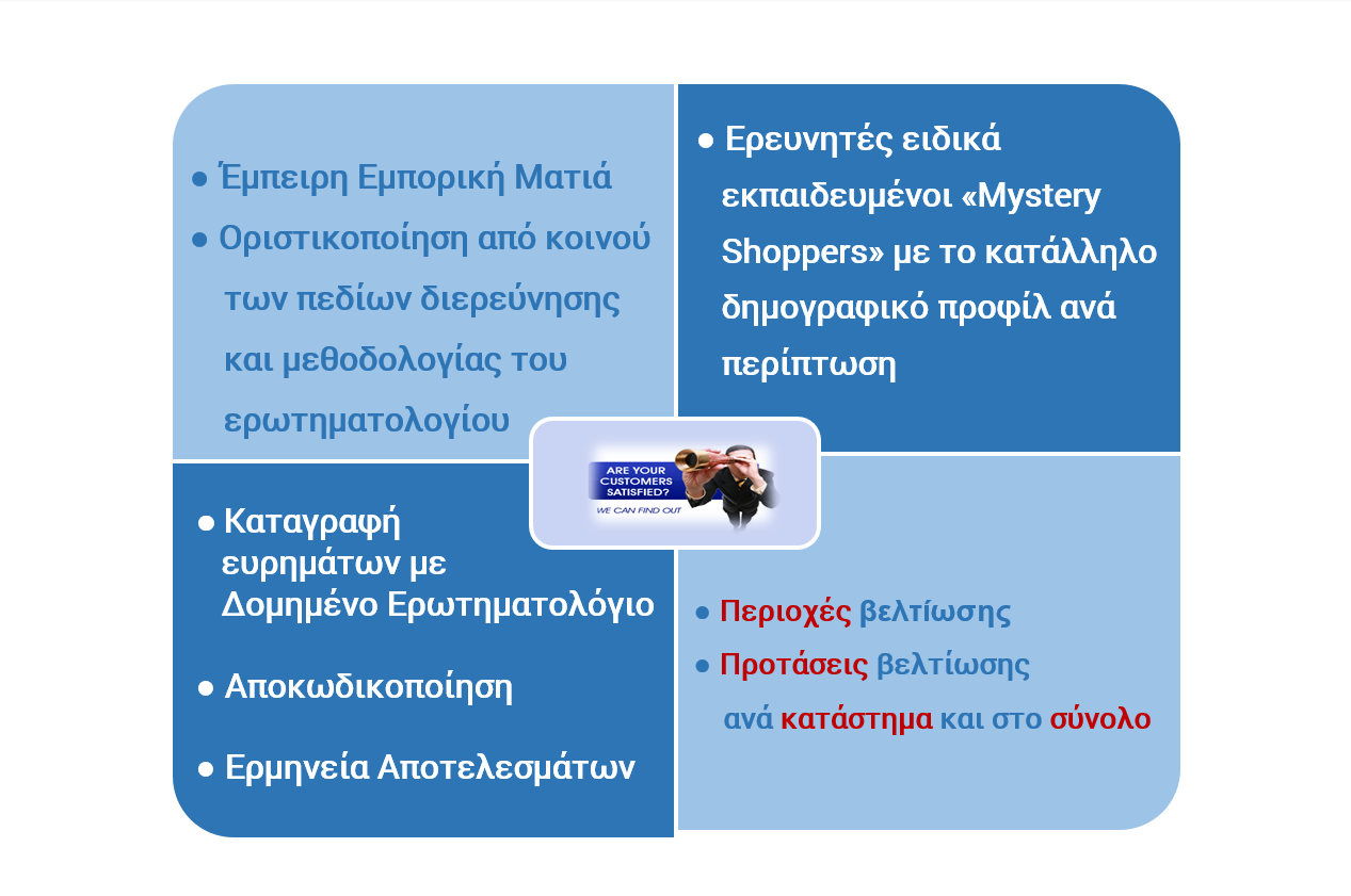 Mystery Shopping Γιατί Mystery Shopping ; Ο κύκλος της εξυπηρέτησης Ανταγωνιστικά Πλεονεκτήματα Exceed Consulting επιστροφή στην κορυφή